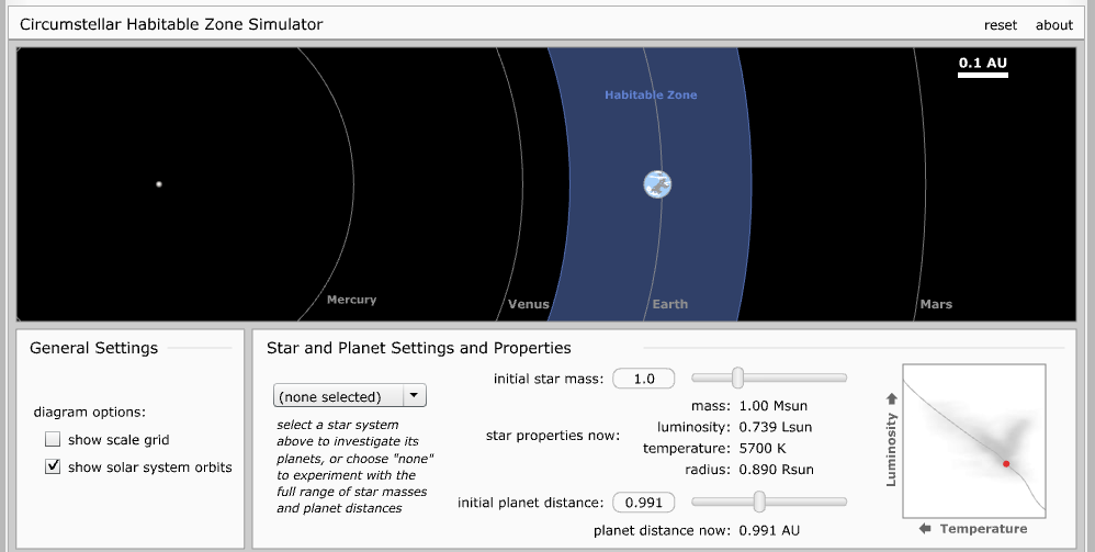 Para acessar o simulador e criar sua estrela, clique no seguinte link: Circumstellar Habitable Zone Simulator